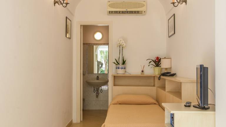 Die klimatisierten Zimmer sind schlicht eingerichtet und verfügen über kühle Fliesenböden. Einige Zimmer bieten eine private Terrasse mit Gartenblick. Zur Ausstattung zählen eine Minibar, ein Haartrockner, ein LCD-Sat-TV und WLAN (ohne Gebühr). Das Badezimmer ist mit einer Dusche und Badewanne ausgestattet, zudem stehen den Gästen Hausschuhe zur Verfügung. Zustellbetten können auf Anfrage bereitgestellt werden.
