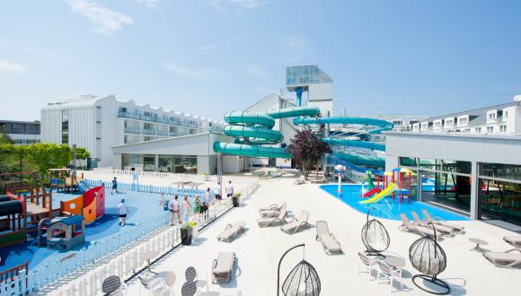Das Hotel Sandra Spa hat eine letzten Komplettrenovierung im Jahr 2016 erfahren und überzeugt durch eine abwechslungsreiche Erholung in Kombination mit SPA- und Entspannungsbehandlungen. Die Unterkunft bietet eine grosszügige Gartenanlage und eine Sonnenterrasse und umfasst zwei Gebäude mit vier Etagen. Insgesamt stehen 350 Zimmer, 4 Appartements sowie 30 Bungalows zur Verfügung. Zu den Annehmlichkeiten gehören diverse Pools, darunter ein Sport-Pool, ein Relaxpool sowie ein Aquapark. Daher eignet sich das Hotel sowohl für Familien als auch für Paare.