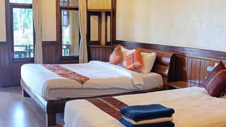 Die Zimmer und Bungalows des Sangswan sind mit Holzmöbeln ausgestattet und zeichnen sich durch helle Fenster aus, die viel Tageslicht hereinlassen. Zur technischen Ausstattung gehören Kabel-TV, eine Minibar sowie ein eigenes Bad mit Dusche.