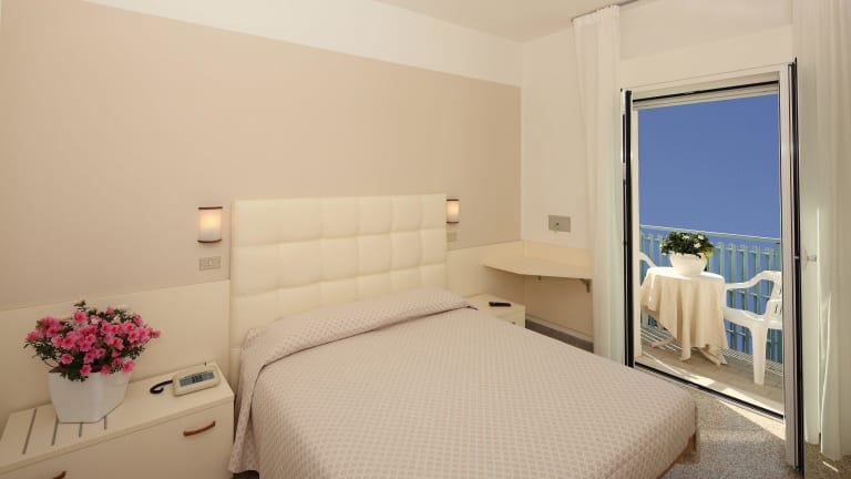 Das Hotel verfügt über 26 Zwei/Drei/Vier-Bettzimmer und 2 Appartements (2 Doppelzimmer mit Verbindungstüre). Die geräumigen, komfortablen und klimatisierten Zimmer besitzen WC mit DuschKabine und Haartrockner, Sat-TV, Safe, Telephon, Heizung und Balkon (einige mit Blick vom Meer). Auf Wünsch Kühlschrank im Zimmer.