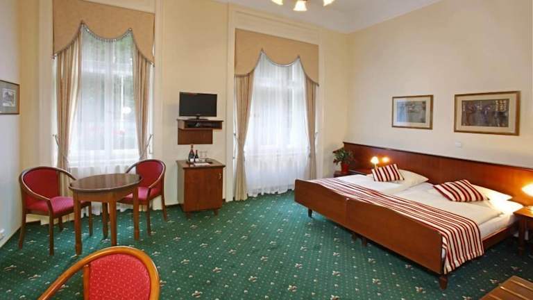 Das Hotel Sant Georg Garni aus dem frühen 20. Jahrhundert ist bekannt für seine elegante und geräumige Zimmerausstattung. Es gehört zu den besten Hotels in der Tschechischen Republik und hat sich auf Gäste spezialisiert, die Ruhe und Frieden suchen. Zu den Dienstleistungen gehören ein preisgekröntes, kostenfreies Frühstück sowie ein Wäsche- und Bügelservice.