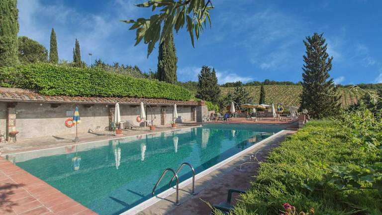 Das Hotel Santa Cristina liegt im Herzen des Weingebietes Chianti, unweit von Siena. Die Umgebung ist geprägt von malerischen Weinbergen, Olivenhaine und typischen toskanischen Hügeln und bietet eine idyllische Kulisse.