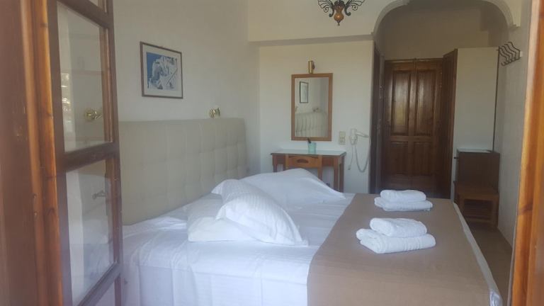 Die klimatisierten Zimmer verfügen über kostenfreies Wifi und bieten entweder einen Balkon oder eine Terrasse mit Sicht auf den Pool oder die Ägäis. Zur Standardausstattung gehören Sat-TV, ein Safe sowie ein eigenes Bad mit Dusche, Pflegeprodukten und Haartrockner.