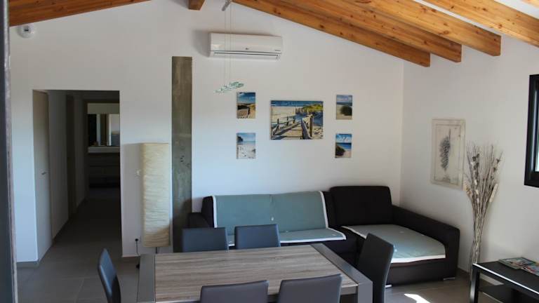 Die Unterkunft bietet ein Ferienhaus mit Klimaanlage, das aus 2 Schlafzimmern, einem Wohnbereich, einer voll ausgestatteten Küche mit Kühlschrank und Kaffeemaschine sowie einem Badezimmer mit Dusche und Haartrockner besteht. Handtücher und Bettwäsche werden zur Verfügung gestellt. Es stehen schallisolierte Zimmer zur Verfügung.
