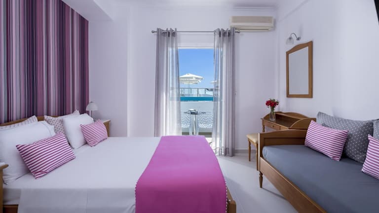Das Hotel verfügt über 26 Zimmer, die alle mit klimatisierter und individuell regulierbarer Klimaanlage, einem Safe, einem Fernseher und kostenfreiem WLAN ausgestattet sind. Jedes Zimmer verfügt über ein eigenes Badezimmer mit Dusche oder Badewanne und einem Haartrockner. Ein Balkon oder eine Terrasse mit Meerblick sorgt für zusätzlichen Komfort.