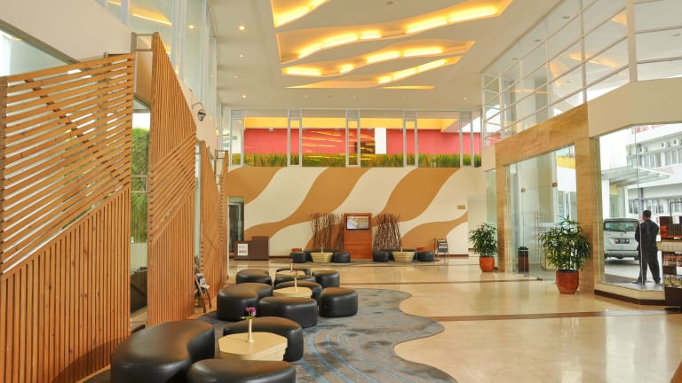 Das Hotel Santika Bangka befindet sich in zentraler Lage in Pangkal Pinang, ca. 8 km vom Strand entfernt. Der Flughafen Depati Amir ist in 5 Fahrminuten erreichbar. Entfernungen: Flughafen ca. 5 km, Strand ca. 8 km, Stadtzentrum ca. 4 km.