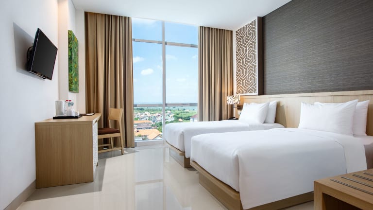Das Hotel Santika Gresik bietet eine Unterkunft mit einem Aussenpool und einem Restaurant. Die Einrichtung umfasst eine Rezeption, die rund um die Uhr besetzt ist, sowie einen Gepäckaufbewahrungsdienst. WLAN steht in der gesamten Unterkunft zur Verfügung. Bei Anreise mit dem Auto kann kostenfrei in einer Garage oder auf dem Parkplatz parkiert werden. Das Hotel verfügt ebenfalls über einen Konferenzraum und einen Zimmerservice.