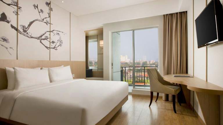 Die Zimmer im Hotel Santika Mega City Bekasi sind gut ausgestattet und bieten eine warme Atmosphäre. Sie verfügen über eine Klimaanlage, ein Doppelbett sowie ein Sofabett. Ein Schreibtisch, ein Safe und eine Tee-/Kaffeemaschine gehören zur Standardausstattung. Das Badezimmer ist mit einer Dusche und Hausschuhen ausgestattet. Zudem können die Gäste über den vorhandenen Fernseher mit Satellitenempfang Programme geniessen. Die Zimmer sind als Familien- und Nichtraucherzimmer erhältlich.