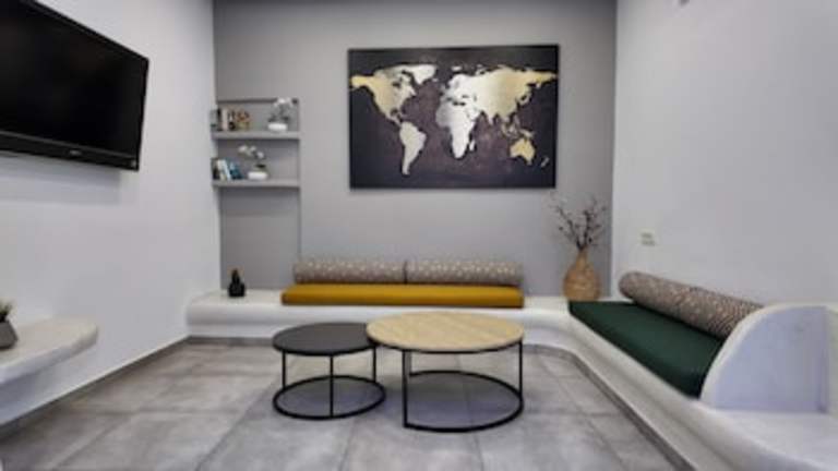 Das Santorini Hotel liegt in der lebhaften Stadt Fira und ist nur 150 m von der beeindruckenden Caldera entfernt. Von hier aus können Sie einen atemberaubenden Blick auf die Ägäis genießen. Das archäologische Museum von Santorini befindet sich in unmittelbarer Nähe des Hotels und ist einen Besuch wert. Die Unterkunft ist auch gut an das öffentliche Verkehrsnetz angebunden, mit einer Bushaltestelle und einem Taxistand nur ca. 50 m entfernt. Der Hafen von Athinios ist 13 km entfernt und der Flughafen Santorini ist 5 km entfernt.