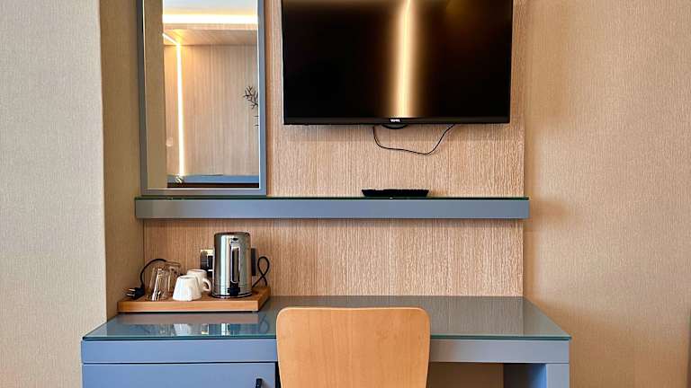 Das Hotel verfügt über verschiedene Zimmerkategorien, darunter Doppelzimmer und Dreibettzimmer. Diese sind nichtraucherfreundlich und bieten moderne Annehmlichkeiten wie Klimaanlage, Minibar, WLAN/WiFi, Fernseher und ein eigenes Bad. Die Zimmer sind geschmackvoll eingerichtet und bieten zusätzlichen Komfort wie Schreibtisch und Wasserkocher.
