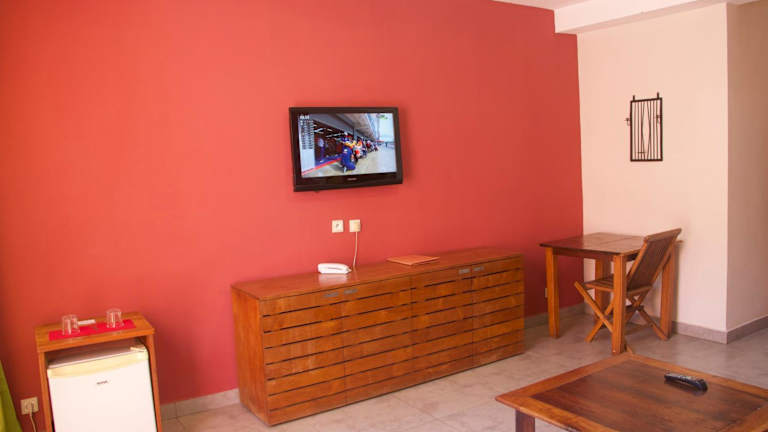 Die klimatisierten Zimmer in der Unterkunft Hôtel Résidence Sarimanok sind mit einem Schreibtisch, einem Wasserkocher, einem Safe, einem Flachbild-TV und einem eigenen Badezimmer mit Dusche ausgestattet. Ausgewählte Zimmer bieten darüber hinaus eine Küche mit Kühlschrank und Minibar. Bettwäsche und Handtücher werden bereitgestellt.
