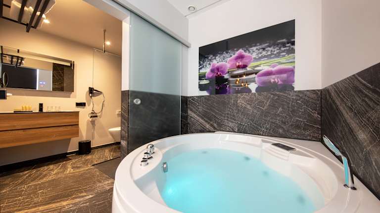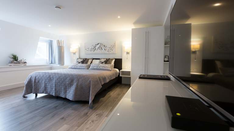 Alle Zimmer im Hotel Scheepers sind mit Boxspring-Betten, einem Flachbild-TV und einem modernen Bad ausgestattet. Einige Zimmer verfügen zusätzlich über ein Bad mit einer Whirlpool-Badewanne.