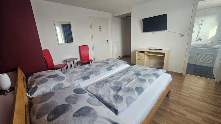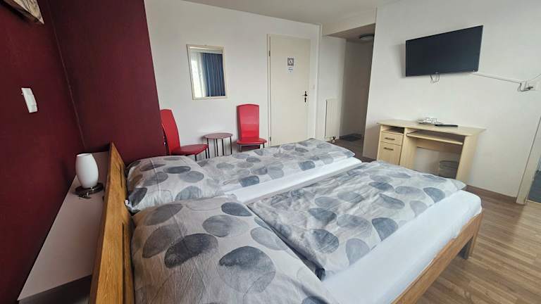 Das Hotel Schiff bietet komfortable Zimmer mit Annehmlichkeiten wie einem Schreibtisch, einem Flachbild-TV und einem eigenen Bad. Bettwäsche und Handtücher werden gestellt und alle Zimmer verfügen über einen Kleiderschrank. Die Zimmer sind gemütlich und bieten alles, was Sie für einen angenehmen Aufenthalt benötigen.