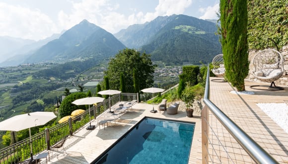 Hotel Schlosswirt in Schenna Wohnen mit Stil. Kulinarium mit Niveau. Relax mit Panorama Mitten im historischen Ortskern von Schenna liegt das Traditionshotel „Hotel Schlosswirt“ im Zentrum schönster Perspektiven. Unter dem Hotel die umschwärmte Kurstadt Meran, darüber das historisch bedeutsame Schloss Schenna. Kling ein wenig wie im Märchen? Familie Prunner macht es möglich. Authentische Tradition und herzliche Gastlichkeit sind seit Generationen ebenso im Familienbesitz wie das außergewöhnliche 4 Sterne Hotel in Schenna selbst. Ob ein wenig Flair von Kaiserin Sissi oder doch lieber moderner Luxus, die Zimmer und Suiten bieten von edel bis rustikal eine wahre Komfortzone. Der Ferienmorgen beginnt hier bei Kaffeeduft und einem reichhaltigen Frühstücksbuffet. Der Ausklang: ein genüssliches 5-Gänge-Menü. Ein guter Tropfen aus dem Sortiment macht das Geschmackserlebnis perfekt. Abgerundet wird die Auszeit im Schlosswirt durch den modernen Wellnessbereich, der mit mehreren Saunen, einem Dampfbad und Whirlpool zu begeistern weiß. Außerdem verfügt das Hotel über einen kleinen Panorama-Outdoor-Pool in Traumlage. Einfach mal den „Power-off“ Button drücken und abschalten, in diesem besonderen Ferienzuhause geht keiner Ihrer Sinne leer aus. Freuen Sie sich auf eine Auszeit im Zeichen kleiner und großer Glücksmomente.