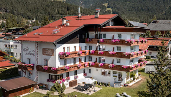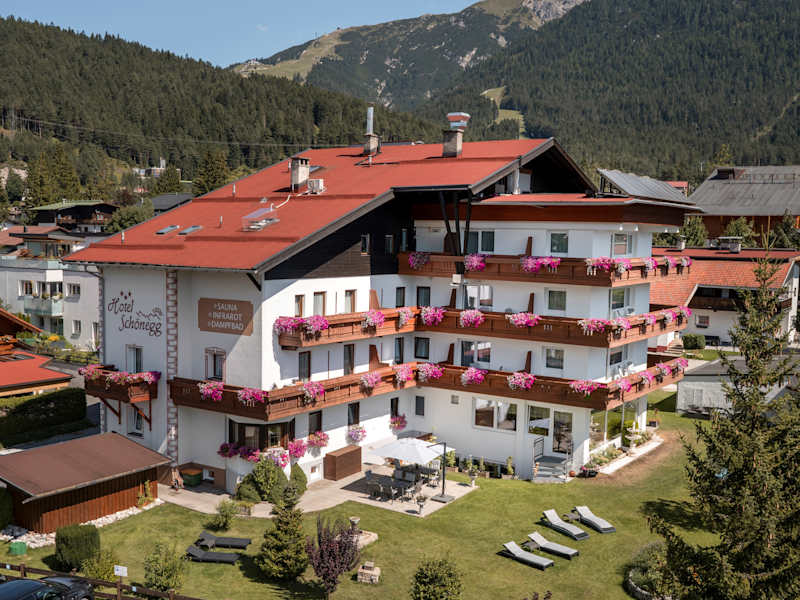 „3 Sterne zum Wohlfühlen“ erwarten Sie - nur 4 Gehminuten vom Zentrum - in ruhiger und erholsamer Lage! Bei familiärer Bewirtung und gelebter Gastfreundschaft spüren Sie im gesamten 3* Hotel Schönegg in Seefeld in Tirol die Herzlichkeit der Familie Schwenniger, die Sie einlädt, einen erlebnisreichen Urlaub in der Region Seefeld zu verbringen. Im Umkreis von 3 bis 15 Gehminuten ist ab dem Hotel Schönegg von der Seefelder Fußgängerzone über das Regionsbus- und Skibussystem bis hin zu den Einstiegen in top gepflegte Wanderwege und Loipen alles „ums Eck“ zu Fuß erreichbar, was unser Hotel zum idealen Ausgangspunkt für Ihren Sommer- oder Winterurlaub macht. Die freundlich-hellen Einzel-, Doppel-, Familienzimmer und Suiten schenken eine traumhafte Aussicht auf das beliebte Karwendelgebirge, die markante Hohe Munde oder den nahegelegenen Gschwandtkopf. Auf einen angenehmen Empfang können Sie sich mit Ihrer Familie bereits in der gemütlichen Hotelhalle freuen, die ebenso wie alle Zimmer mit Gratis W-LAN ausgestattet ist und neben der neuen Hotelbar auch abends Raum für gute Gespräche in geschmackvollem Tiroler Ambiente bietet. Kinder freuen sich über die Spaß versprechende Kinderspielecke. Von den Zimmern über den Speisesaal bis hin zum Garten mit Sonnenterrasse sind alle Stockwerke über einen Personenlift bequem erreichbar. Nehmen Sie Platz in unserem Restaurant, um sich heimischen und internationalen Köstlichkeiten hinzugeben: Verwöhnen Sie Ihren Gaumen mit dem vielseitigen Frühstücksbuffet mit 78 verschiedenen Qualitäts-Produkten oder dem täglichen Wahlmenü am Abend einschließlich Vital-Variante – das schmeckt nach Urlaub! Als extra „Zuckerl“ sorgt unser kostenloses Kuchenbuffet für süße Versuchungen am Nachmittag (im Winter täglich, im Sommer wöchentlich). Energie spenden zudem die hauseigene, finnische Sauna, die Physiotherm Infrarotliege, unsere kleine 2 Personen Dampfkabine, Erlebnisduschen und unser Heuaroma sorgt für wunderbare Momente der Entspannung im Hotel Schönegg inmitten Tirols beeindruckender Bergwelt. Zusätzliches Plus: Unsere Gäste haben im Winter freien Eintritt in das Olympiabad Seefeld (werktags von Montag bis Donnerstag). Weitere Inklusivleistungen sind im Sommer die Greenfee Ermäßigung beim Golfclub Seefeld-Reith und in Wildmoos (18 Loch). Im Winter ist der Seefelder Skilift Geigenbühel mit 3 Gehminuten „zum Greifen nahe“ und optimal für die ersten Skiversuche Ihrer Kinder. Bei Astrid und Martin Schwenniger im 3* Hotel Schönegg in Seefeld in Tirol finden Sie Ihre persönliche Kraftquelle in der Region Seefeld, für entspannte Ferien mit Familie oder Freunden! BESTPREISGARANTIE bei Direktbuchungen unter https://www.hotelschoenegg.at. Email: info@hotelschoenegg.at