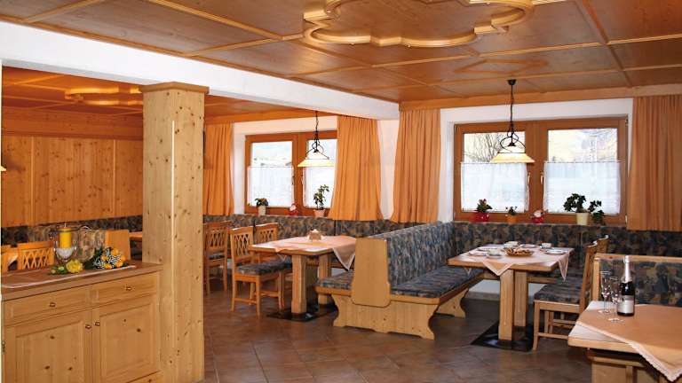 Das reichhaltige Frühstücksbuffet besteht aus Produkten vom hoteleigenen Bauernhof. Eine voll ausgestattete Gemeinschaftsküche steht den Gästen zur Verfügung. Zudem gibt es die Möglichkeit, im gemütlichen Frühstücksraum zu speisen.