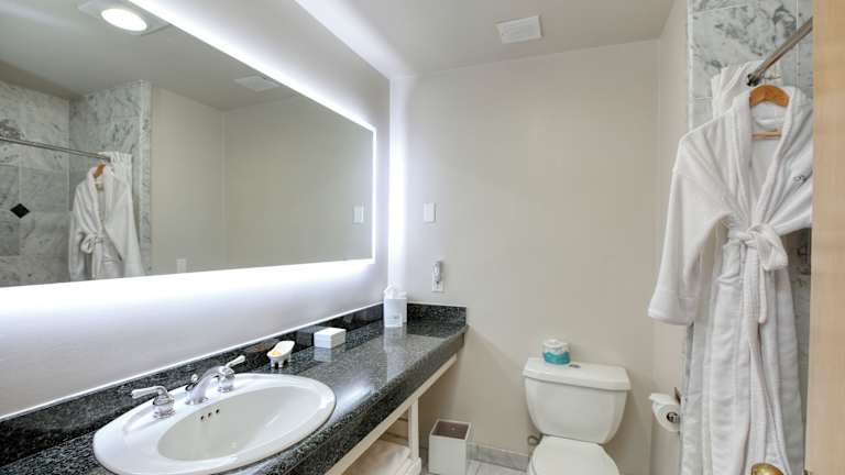 Die Zimmer sind mit Klimaanlage, Heizung und Ventilator ausgestattet. Gäste können die Aussicht auf das Meer von Balkon oder Terrasse geniessen. Weiterhin sind ein Doppelbett oder Kingsize-Bett, Minibar, Kühlschrank, Tee-/Kaffeemaschine sowie Sat-TV vorhanden. Die Badezimmer verfügen über Dusche, Badewanne und Whirlwanne, mit Bademänteln sowie Kosmetikartikeln für zusätzlichen Komfort. Rollstuhlgerechte Zimmer sind ebenfalls buchbar.
