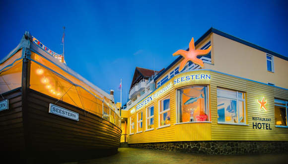 Das Restaurant im Hotel Seestern bietet eine Auswahl an regionalen und internationalen Gerichten. Es werden auch Speisen für spezielle Ernährungsbedürfnisse auf Anfrage angeboten. Frühstück, Mittagessen und verschiedene Snacks sind ebenfalls verfügbar.