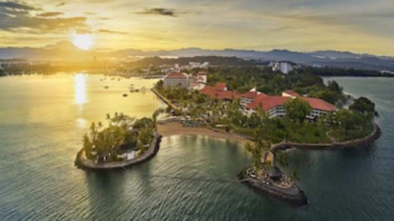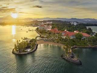 Das Shangri-La's Tanjung Aru Resort & Spa liegt auf einer Halbinsel, umgeben vom Südchinesischen Meer. Die ruhige Lage ermöglicht eine entspannte Atmosphäre, während lokale Sehenswürdigkeiten, das Stadtzentrum und der internationale Flughafen Kinabalu nur etwa 10 Minuten entfernt sind. Der Strand ist sandig und lädt zum Entspannen ein.