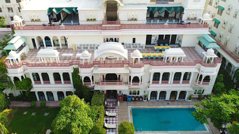 Das Hotel Shapura House kombiniert traditionelle Architektur der Rajputen mit Elementen des Mogulreichs. Die Unterkunft besitzt eine ansprechende Fassade mit Kuppeln und Fresken und beherbergt auch die herrschende Königsfamilie. In diesem Haus stehen den Gästen 40 Zimmer zur Verfügung. Es gibt eine Rezeption, einen Lift, Gepäckaufbewahrung, einen Safe sowie eine Wechselstube. Zur Erholung können Gäste die Gartenanlage und die Sonnenterrasse nutzen. Kostenfreies WLAN ist in den öffentlichen Bereichen verfügbar.