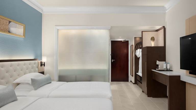 Jedes Zimmer ist mit einer Minibar, einer Kaffeemaschine und einem eigenen Bad ausgestattet, das Bademäntel, Hausschuhe und hochwertige Annehmlichkeiten umfasst.
