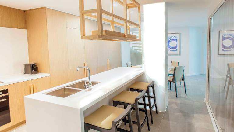 Die Zimmer sind mit Klimaanlage, Heizung, einem Queensizebett, einem Sofabett sowie einem Safe ausgestattet. Zudem bieten die meisten Unterkünfte Meerblick. Zu den weiteren Annehmlichkeiten gehören eine Minibar, ein Kühlschrank, eine Tee-/Kaffeemaschine, ein TV-Gerät mit Satelliten-/Kabelempfang und kostenloses WiFi. Des Weiteren verfügen die Badezimmer über eine Dusche und eine Badewanne, ergänzt durch Haartrockner, Bademäntel und Kosmetikartikel.