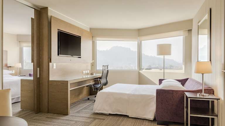 Die Zimmer im Sheraton Santiago sind geschmackvoll dekoriert und verfügen über Annehmlichkeiten wie einen Flachbild-TV, ein eigenes Bad mit kostenlosen Pflegeprodukten, Klimaanlage, Fußbodenheizung und einen Safe. Zu den weiteren Ausstattungen gehören ein Sofa, ein Schreibtisch, eine iPod-Dockingstation und in einigen Zimmern eine Minibar, die gegen Gebühr genutzt werden kann. Zimmerreinigung wird täglich angeboten.