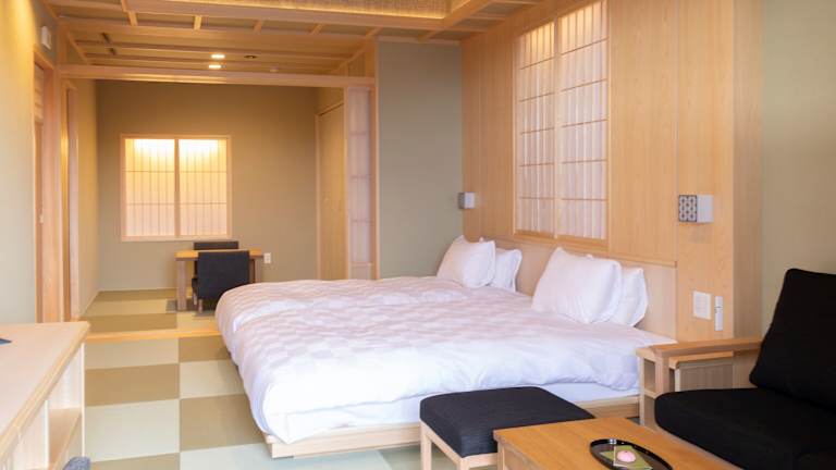 Hotel Shikinoyakata Hakone Ashinoko bietet klimatisierte Zimmer mit kostenlosem Wifi und Zugang zu einem Gemeinschaftsbad. Die Gäste können in der Bar entspannen und das Restaurant besuchen. Die Ausstattung umfasst zudem Nichtraucherzimmer und eine Sauna.