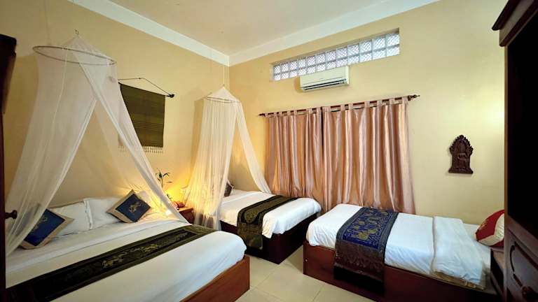 Die 21 Nichtraucherzimmer des Shining Angkor Boutique Hotels sind im traditionellen kambodschanischen Stil gestaltet und verfügen über Massivholzmöbel. Jedes Zimmer bietet einen Balkon mit Blick auf die grüne Umgebung. Zur Ausstattung gehören Kabel-TV, eine Minibar und kostenfreies WLAN. Für zusätzlichen Komfort sorgen ein Schreibtisch, eine Klimaanlage und eine Tee-/Kaffeemaschine. Im Badezimmer finden Sie eine Dusche oder eine Badewanne sowie einen Haartrockner und kostenlose Kosmetikartikel.