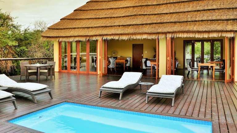 Das Hotel befindet sich inmitten von 15.000 ha Wildnis im südöstlichen Teil des weltbekannten Kruger Nationalparks. Mit dem Fluss Crocodile River als südliche Grenze bietet die Umgebung eine herausragende Sicht auf Wasservögel, Nilpferde, sowie grosse Büffel- und Elefantenherden. Der Flughafen ist ca. 108 km entfernt und das Stadtzentrum ca. 130,3 km.