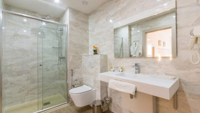 Die klimatisierten Zimmer sind ausgestattet mit einem Schreibtisch, einem Wasserkocher, einem Kühlschrank, einem Safe, einem Flachbild-TV und einem eigenen Bad mit Dusche. Jedes Zimmer verfügt zudem über einen Kleiderschrank.