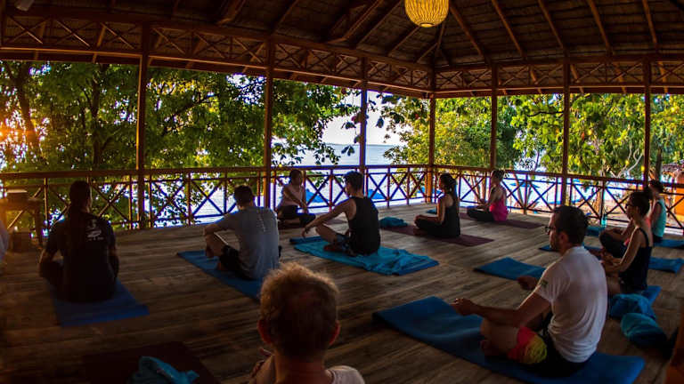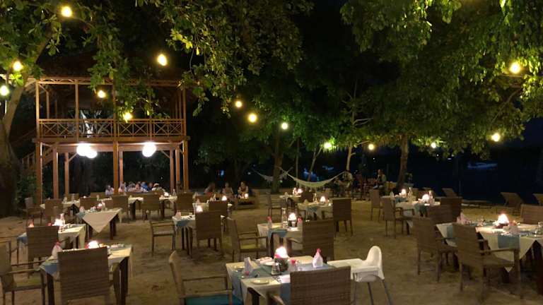 Das Resort verfügt über einen Pool im Freien, der zum Baden einlädt. Auf der Sonnenterrasse stehen Liegestühle und Schirme bereit. Sportliche Aktivitäten umfassen Beachvolleyball, Angeln sowie ein umfangreiches Wassersportangebot wie Schnorcheln und Tauchen. Ein Fitnessstudio, Billard und Yoga sind ebenfalls Teil des Freizeitangebots. Der Wellnessbereich mit Spa bietet die Möglichkeit, Massagen zu buchen, und die Gäste können abends Live-Musik geniessen.