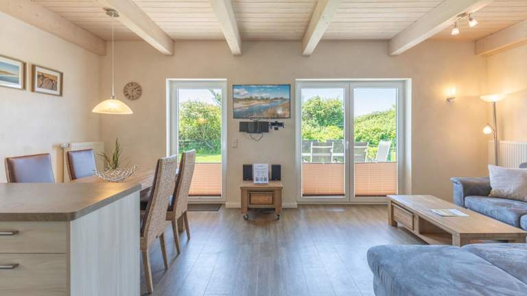 Das Ferienhaus Silbermöwe besticht durch eine heimelige Atmosphäre und praktische Übernachtungsmöglichkeiten mit Terrasse und Balkon. Es bietet Platz für eine angenehme Zeit mit Familie oder Freunden, ergänzt durch einen Garten und eine kostenlose Parkiermöglichkeit.