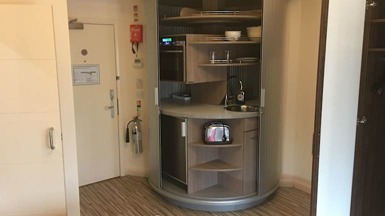Die Zimmer sind mit einer Klimaanlage, Heizung und Ventilator ausgestattet. Jedes Zimmer bietet ein Doppelbett oder ein Queensize-Bett, sowie einen Safe und einen Schreibtisch. In der Kochnische stehen ein Kühlschrank, eine Mikrowelle und eine Tee-/Kaffeemaschine zur Verfügung. Ein Bügelset, Telefon, Sat-TV, Radio und Wifi sind ebenfalls vorhanden. Die Badezimmer verfügen über eine Dusche, Badewanne, Haartrockner und Kosmetikartikel. Das Hotel bietet Nichtraucherzimmer.