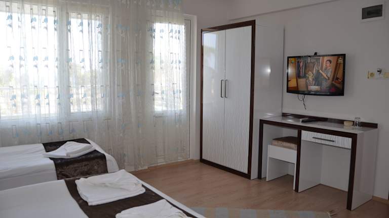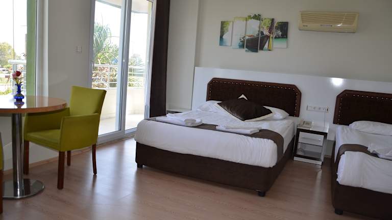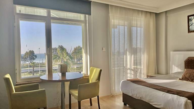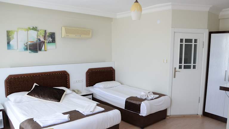 Die Gästezimmer im Hotel Simsek sind mit einem Balkon ausgestattet und verfügen über ein eigenes Badezimmer mit Badewanne oder Dusche sowie kostenlosen Pflegeprodukten. Einige Zimmer bieten zudem einen Blick auf das Meer. Weitere Annehmlichkeiten sind Klimaanlage, Schreibtisch und kostenfreies Wifi in allen Bereichen.