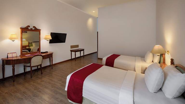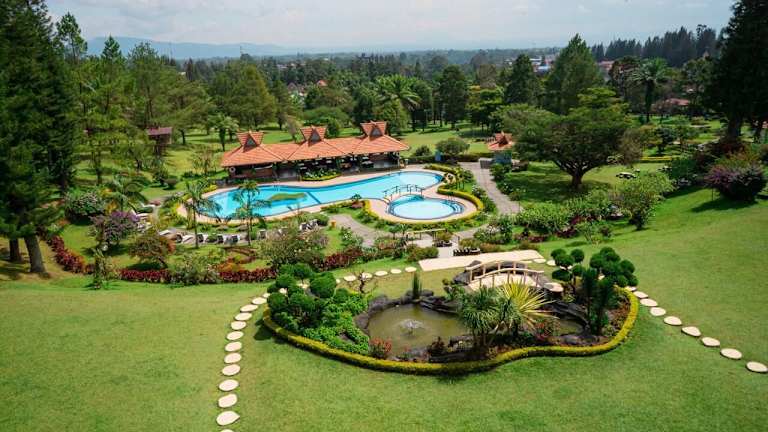 Das Hotel Sinabung Resort bietet eine harmonische Verbindung aus natürlichem Schönheit und modernem Komfort. Die Unterkunft verfügt über 106 Zimmer und eine Vielzahl an Einrichtungen, darunter eine Rezeption, einen Safe, einen Geldautomaten sowie rollstuhlgerechte Zugänge. Ein schöner Garten sowie ein Spielplatz sorgen für ein angenehmes Ambiente. Gästen stehen zudem ein Zeitungskiosk und ein TV-Raum zur Verfügung. Ein 24-Stunden-Sicherheitsdienst, Zimmerservice, Wäscheservice und medizinische Betreuung runden das Angebot ab. Weitere Annehmlichkeiten sind ein Business-Center, eine Garage sowie Parkiermöglichkeiten ohne Gebühr. Das Hotel bietet attraktive Einrichtungen wie Innen- und Aussenpools einschliesslich eines Kinderbadebereiches, um den Aufenthalt komfortabel zu gestalten.