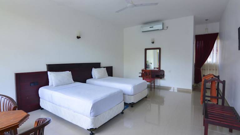 Das Hotel bietet insgesamt 19 Zimmer, darunter Einzel- und Doppelzimmer, die sich sowohl im Haupthaus als auch in Nebengebäuden befinden. Die Zimmer sind komfortabel eingerichtet und verfügen über Annehmlichkeiten wie Klimaanlage, Ventilator, Balkon oder Terrasse, Tee- und Kaffeekocher, Telefon und WLAN. Die Badezimmer sind mit Dusche und Badewanne ausgestattet.