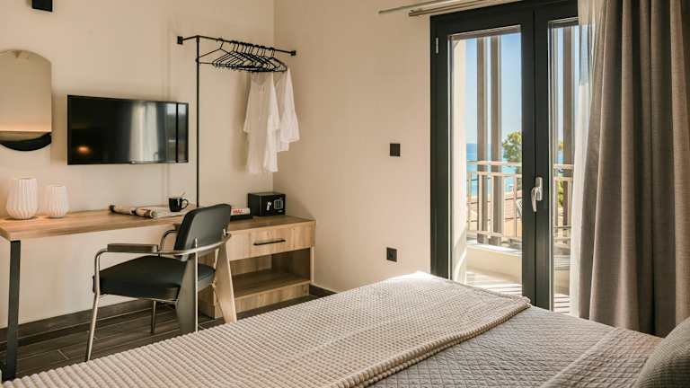 Die klimatisierten Zimmer im Hotel Skala sind mit einem Kühlschrank, einem Safe, einem eigenen Bad mit Dusche sowie kostenlosem Wifi ausgestattet. Die Reinigung erfolgt täglich und die Bettwäsche wird alle 3 Tage sowie die Handtücher alle 2 Tage gewechselt.