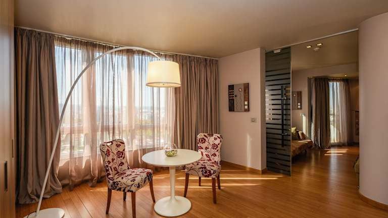 Die Zimmer sind mit Klimaanlage individuell steuerbar und verfügen über ein angenehmes Raumklima. Viele Zimmer bieten einen Balkon, sind mit Teppichböden ausgestattet und verfügen über Doppel- oder Kingsize-Betten. Weitere Annehmlichkeiten sind ein Safe, eine Minibar, ein Kühlschrank, ein Bügelset, ein Telefon mit Direktwahl, ein TV-Gerät sowie kostenfreies Wifi. Die Badezimmer sind mit Dusche und Badewanne, Haartrockner und Kosmetikartikeln ausgestattet. Barrierefreie Badezimmer sind ebenfalls buchbar.