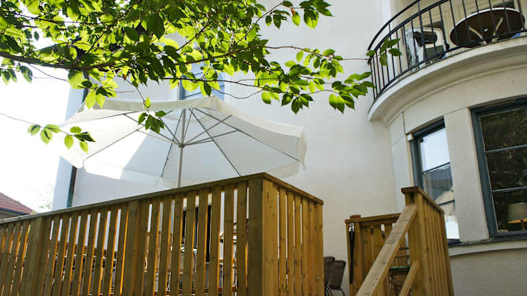 Jeden Morgen wird ein abwechslungsreiches Frühstücksbuffet serviert. Auf Wunsch werden auch Speisen für besondere Ernährungsbedürfnisse angeboten. Während des Aufenthalts können Gäste im Garten und auf der Terrasse entspannen und dort das Frühstück geniessen.
