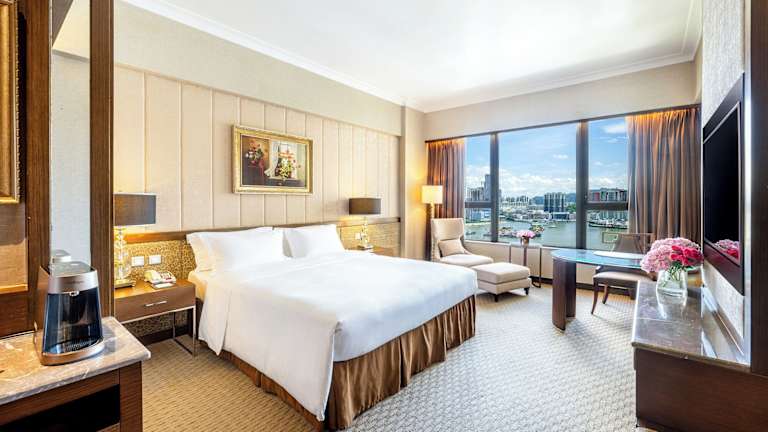 Sofitel Macau at Ponte 16 bietet 408 Zimmer und erstreckt sich über 18 Stockwerke. Das Hotel verfügt über einen Aufzug und ein mehrsprachiges Personal, das den Gästen rund um die Uhr zur Verfügung steht. Zu den Einrichtungen gehören ein Supermarkt, ein Souvenirshop, ein schöner Garten und ein Spielplatz.