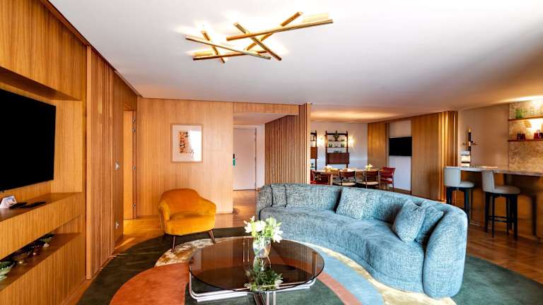 Die Zimmer sind mit einem Wohnbereich, einer Küche und einem Badezimmer ausgestattet und verfügen über Klimaanlage, Heizung, Minibar, Schreibtisch sowie einen Balkon. Zur Ausstattung gehören auch ein Safe, ein Telefon, Satelliten-TV und WiFi. Die Badezimmer bieten Dusche, Badewanne und Haartrockner. Auch rollstuhlgerechte Zimmer sind vorhanden.