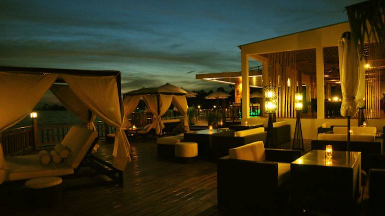 "Das Sokha Beach Resort bietet eine breite Auswahl an gastronomischen Einrichtungen. Im Hauptrestaurant ""The Lotus"" können Sie internationale und landestypische Gerichte vom Buffet genießen. Das Restaurant ""Champa Café & Bar"" bietet asiatische, internationale und landestypische Küche in Buffet- und à la carte-Optionen. Das Restaurant ""Turmeric"" serviert asiatische Gerichte in Buffetform. An den verschiedenen Bars des Resorts, darunter die ""Pool Bar"", die ""Dolphin Bar"", die ""Beach Bar"" und die ""Sunset Bar"", können Sie erfrischende Getränke und Snacks genießen."