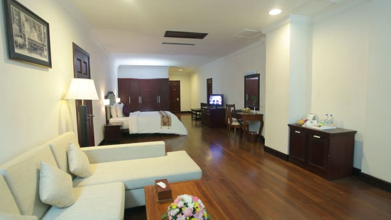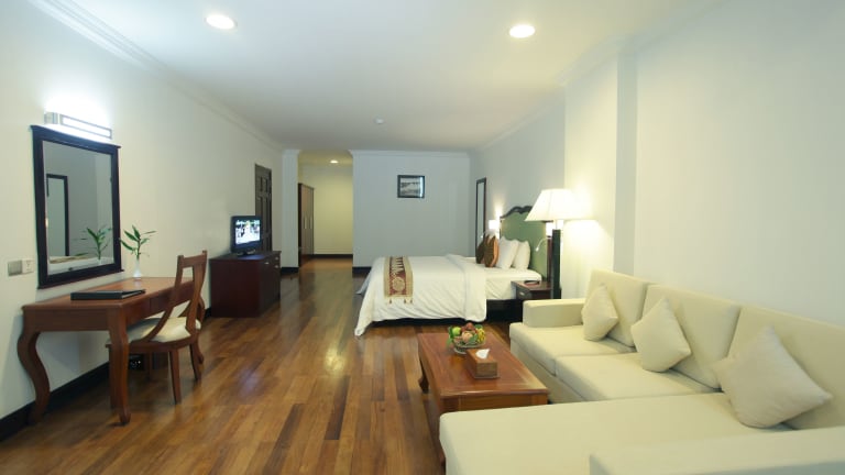 Das Hotel befindet sich in Siem Reap, ca. 2 km entfernt vom Flughafen und Bahnhof sowie etwa 3 km vom Stadtzentrum. Ein Golfplatz liegt in unmittelbarer Nähe, etwa 1 km entfernt.
