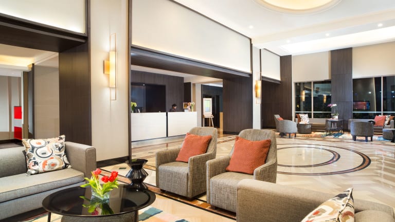 Die gastronomischen Einrichtungen umfassen einen Speiseraum, einen Frühstückssaal, ein Café und eine Bar. Ein kontinentales Buffetfrühstück garantiert einen guten Start in den Tag. Mittags und abends werden asiatische und internationale Speisen serviert, während das Ruth's Chris Steak House Grillgerichte im amerikanischen Stil anbietet. Für Kinder werden spezielle Kindermenüs zubereitet.