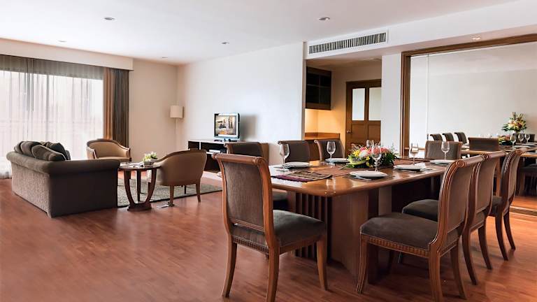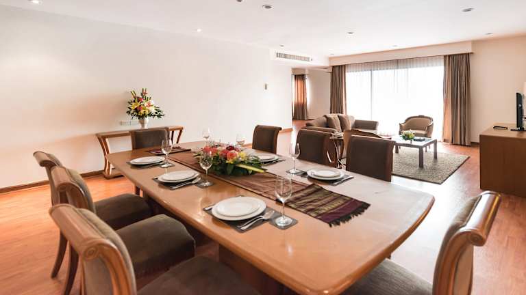 Das Hotel Somerset Park Suanplu befindet sich in der ruhigen Umgebung abseits der Hauptstrasse South Sathorn Road in Bangkok. In der Nähe finden Gäste eine Haltestelle des BTS Skytrain sowie die MRT-Station Lumpini. Der Flughafen Bangkok-Suvarnabhumi ist ca. 45 Fahrminuten entfernt.