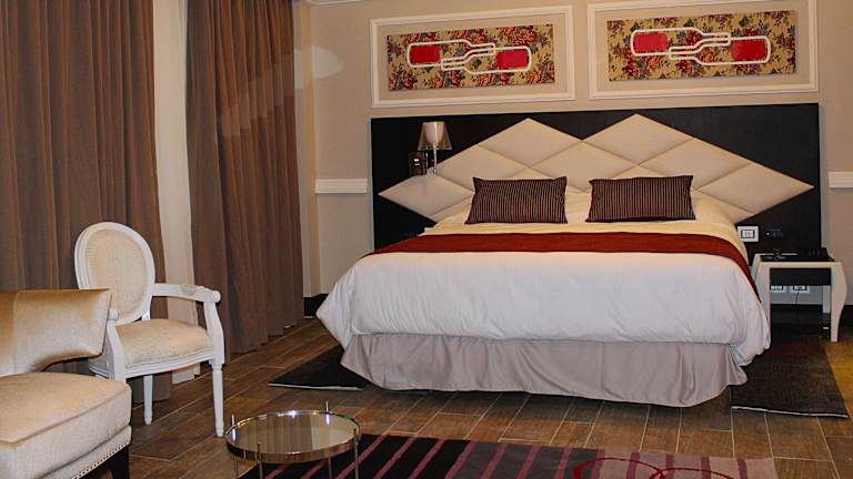 Die Zimmer umfassen Doppelzimmer und Deluxe-Zimmer mit jeweils ca. 30 m². Jedes Zimmer ist mit Klimaanlage, Heizung, Safe (gegen Gebühr), Kaffee-/Teezubereiter und einem Flachbild-TV ausgestattet. Die eigenen Badezimmer verfügen über eine Dusche, WC und Föhn. Einige Zimmer bieten einen Blick auf die Berge.