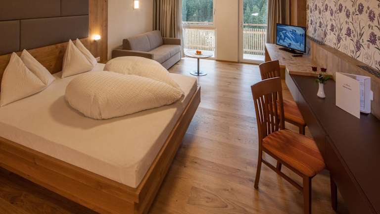 Die Zimmer des Hotel Sonnalp sind im klassischen Bergstil mit Massivholzmöbeln eingerichtet. Sie verfügen über Annehmlichkeiten wie einen TV, einen Schreibtisch und einen Wecker. WLAN ist in den öffentlichen Bereichen verfügbar.