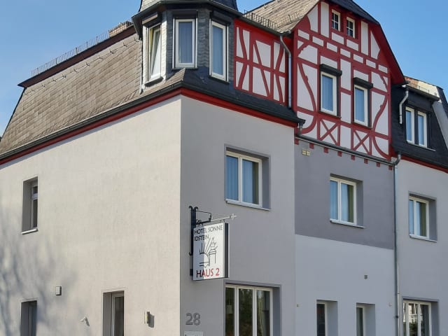 Das Hotel Sonne Idstein präsentiert sich in einem traditionellen Fachwerkhaus und bietet moderne Zimmer sowie kostenloses Wifi. Die Unterkunft legt Wert auf eine einladende Atmosphäre und ist ideal für Gäste, die die Region erkunden möchten.