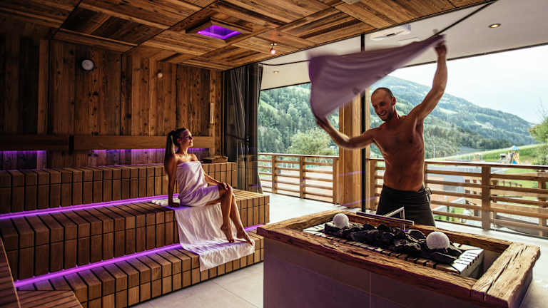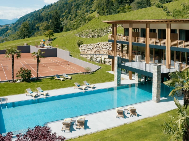 Ohne Gebühr: Fitnessraum mit Cardiogeräten, Aktiv-Fit-und Wochenprogramm sowie Kinderraum mit Spielecke, und 3 Tennis-Sandplätze direkt am Hotel. Gegen Gebühr: Ermäßigte Green-Fees auf der 18-Loch-Anglage Passeier-Meran und den weiteren Golfplätzen in Südtirol, Sonderleistungen bei Golfkursen, ermäßigte Reitkurse im Partnerhotel. Wellness: 3000 m² Wellness mit NEUEM beheizten Sportpool, Hallenbad, NEUE Saunalandschaft und Ruheraum. In der Beauty-Wellnessalm, Beauty- und Wellnessanwendungen mit hochwertigen Naturprodukten.